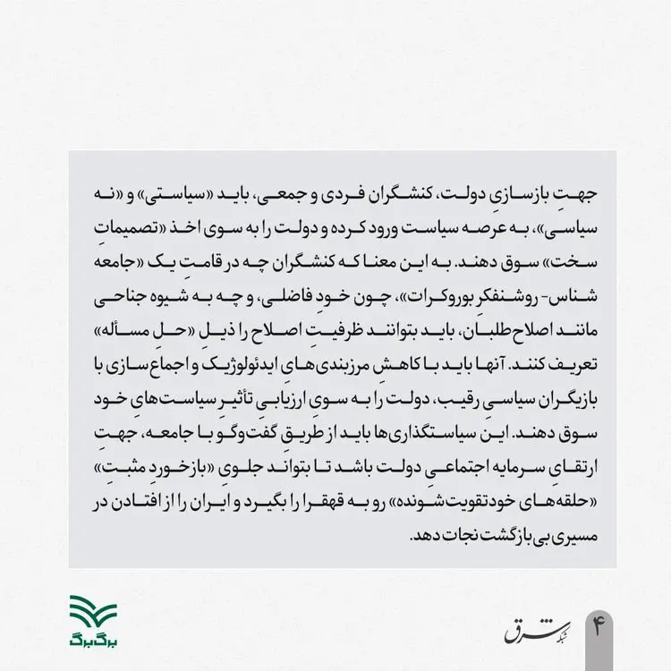 اصلِ حرفِ کتاب را میتوان در یک گزاره خلاصه کرد؛ اینکه«دولت بودنِ دولت»، بر «چگونه بودنِ دولت» تقدم زمانی و کارکردی دارد. به این معنا که اگر دولت، عناصری از دولتِ مدرن را نداشته باشد، اقتدارگرا یا دموکراتیک بودنش چندان مسئله نیست و در هر دو حالت نمیتواند جامعه تحتِ کنترلِ خود را به سوی توسعه هدایت کند.